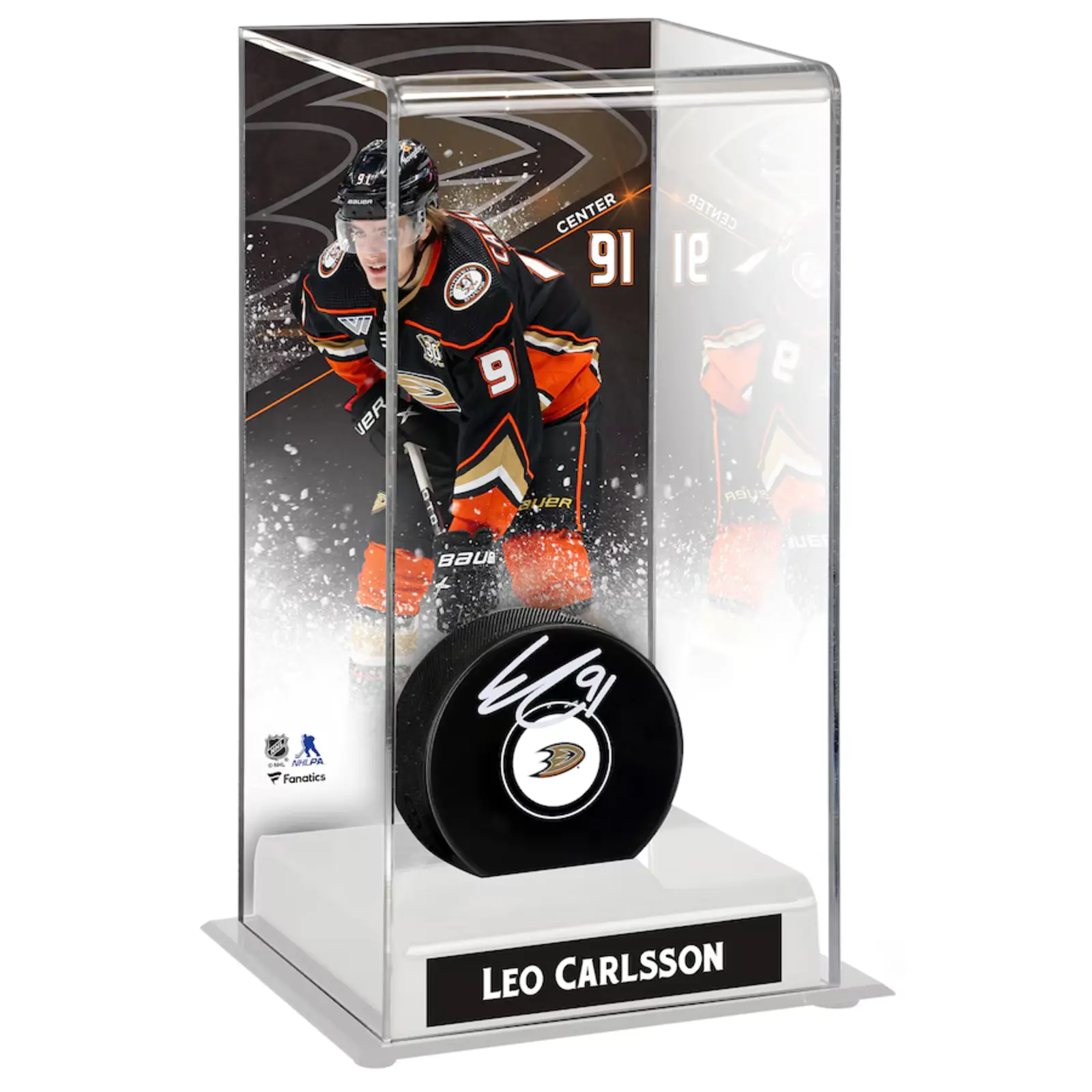 Autographed Winnipeg Jets Mark Scheifele Fanatics Authentic Puck with Deluxe Tall Hockey Puck Case