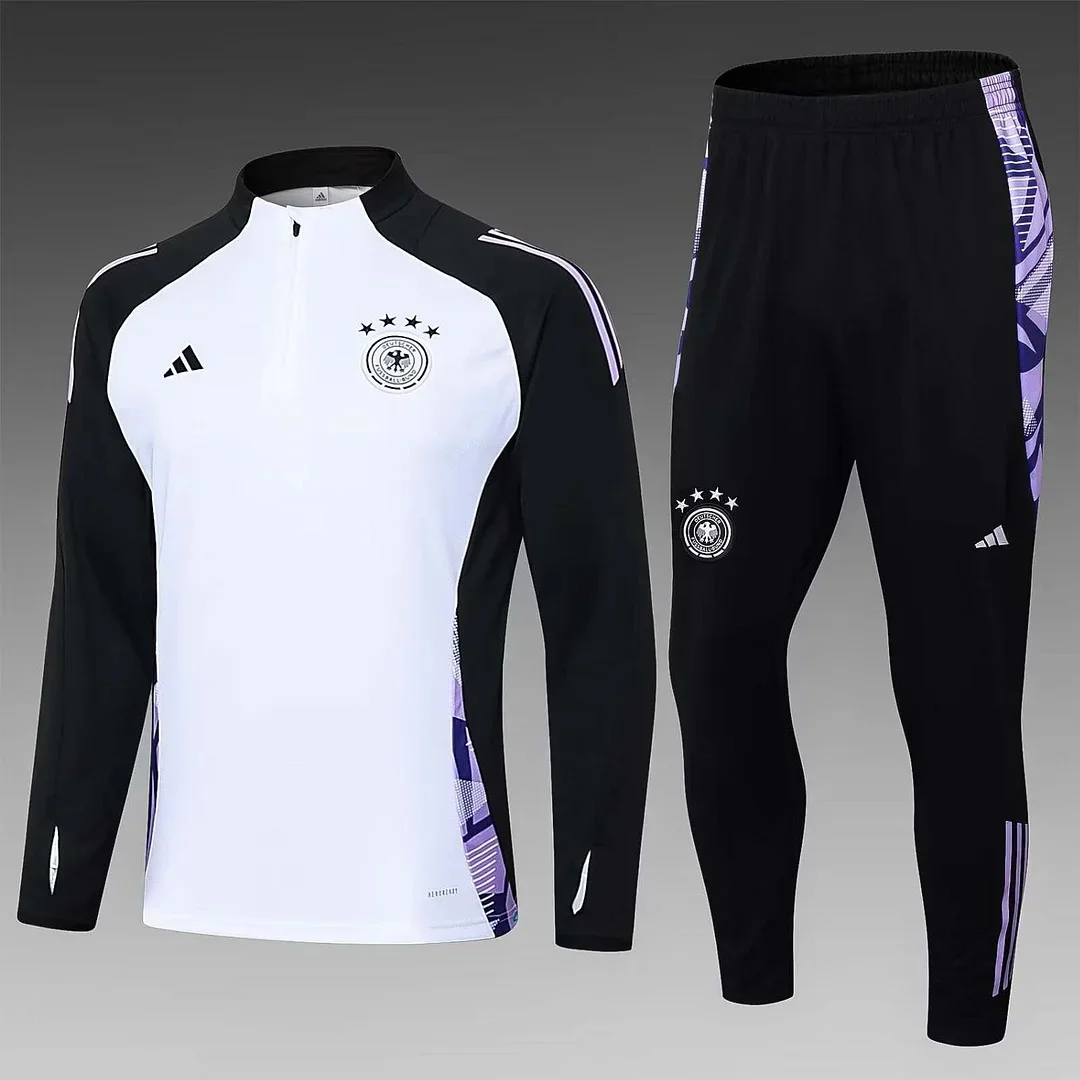 2024 Germany Half-Pull Training Suit White Jersey Set 1:1 Thai Quality